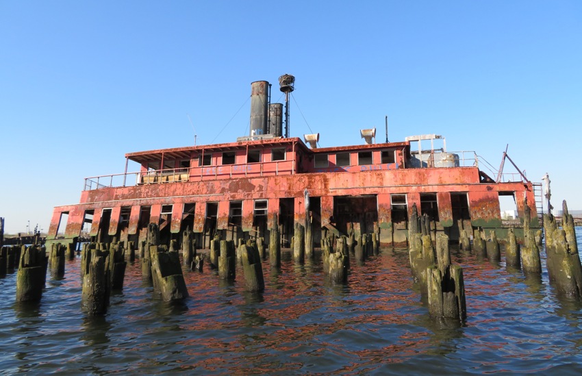 On the New York side, not far from our launch site, we saw a barge with some history. It was involved in a fairly recent oil spill in the area.