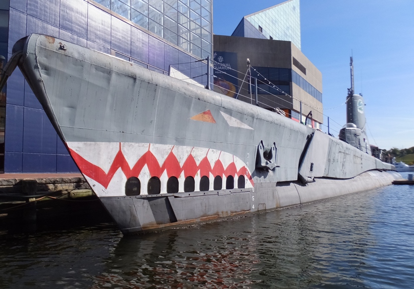 The feature ship was the USS Zumwalt. This is the U.S. Navy's newest destroyer. It uses stealth technology and state-of-the-art electric propulsion to make it hard to detect. "They built this class to be very, very stealthy," Wertheim said. He sees the Navy using the ship in concert with the Marine Corps' new F-35B stealth jets: "It can get really close to provide that support." The Zumwalt is the largest destroyer the Navy has ever built - in an earlier era, it could have been classed as a heavy cruiser. The vessel displaces 15,600 tons, almost twice as much as an Arleigh Burke-class destroyer. But despite its size, nearly everything about the ship is designed to make it harder to spot on radar. Its smooth surfaces and unusual shape deflect radio waves at odd angles. The superstructure is made of a material more difficult to pick up than metal. Smaller boats that could one day be used by Navy SEALs are hidden away inside. And where on a traditional ship, crew on the bridge would be able to look out of windows or step outside to see the surroundings, the Zumwalt's officers will rely on a suite of cameras that project images onto television screens. The result, Kirk said, is that the ship looks on a radar screen just one-fiftieth of the size of an Arleigh Burke-class destroyer - one of which will also be in Baltimore for Fleet Week - despite actually being far larger. The ship is designed to be quiet, too, making it hard to listen out for. - from "Navy's new stealth destroyer Zumwalt to arrive in Baltimore on Friday for Fleet Week commissioning" (broken link as of 2025) The Zumwalt is scheduled to be commissioned on October 15, 2016. It would have been nice to go aboard this ship but ticket requests had closed on September 10. I figured I could at least see it up close from the outside but unfortunately, Coast Guard Fleet Week regulations state No vessel or person is allowed within 100 yards of a large U.S. naval vessel unless authorized by the Coast Guard, the senior naval officer present in command, or official patrol. I found out many of the ships would arrive Wednesday afternoon. That is not when I wanted to be out on the water since I didn't want to be near such a big ship that was moving while I was on a SUP or kayak. The perfect day in terms of weather ended up being Saturday but I figure that is when a lot of people would be on the water. Friday afternoon was also very good so I went with that. Fortunately, my job has flexible hours so sometimes I can do recreational things midday during the week. I obtained a map showing the location of the various boats. I figured I could see them all over seven miles or less. I invited several people to join me but they all declined. I guess their work hours aren't as flexible as mine or they just weren't interested. The plan was to launch at Canton Waterfront Park at 1400. I arrived around 1340 but I could not enter the park. Two policemen stood at the entrance which was blocked by orange road cones. They said the lot was full. Folks were there to get a good view of the air show featuring the Blue Angels F/A 18 Hornet fighter jets. So I drove around the corner and parked in a pay lot. Then I walked over and asked the policemen if I could walk in with my SUP and launch. They said yes. I returned a little later wearing a wetsuit and carrying my SUP and paddle on my head and carrying my gear in a dry bag backpack. The place was packed and the city even brought in some porta-johns. There was a sign at the boat ramp saying it was closed. There was another policeman nearby and I asked if I could launch my SUP and he also said yes. I was on the water by 1420. I paddled across Northwest Harbor to get a view of the USS Zumwalt at the North Locust Point Marine Terminal. There was a floating yellow barricade up around the entrance connecting the piers where the USS Zumwalt, USS Leyte Gulf, and USS Jason Dunham were docked. In front of that was a police boat. I was pretty far from the nearest ship but the police told me not to get any closer. So I paddled back across Northwest Harbor. I figured I'd see the Zumwalt again and in doing so, I would know just how close was close enough. I made my way towards the Inner Harbor staying along the north side. A lot of people were out watching the Blue Angels. I'm not much into planes but they certainly were impressive. The Thunderbirds is the Air Force equivalent to the Blue Angels though I think the latter is better. I've always been biased in favor of Navy pilots. It takes nerves of steel to take off and land on an aircraft carrier...something I'm guessing few Air Force pilots ever do. I saw a few people from the Canton Kayak Club launching their club kayaks near the Royal Canadian Navy Iroquois-class warship HMCS Athabaskan (DDG 282). During the time I was out, I saw about eight kayaks. I was the only SUPer. There were very few powerboats out. I reckon that is because there were restricted areas near Fort McHenry where boats couldn't go during the air show. That means boats outside of the Inner and Northwest Harbor had to stay out until the air show was over. Near the Seven Foot Knoll Lighthouse, I saw a U.S. Navy Yard Patrol (YP) Craft. The YPs are used to teach familiarization with water craft, Basic Damage Control and underway instruction of Basic to Advanced Seamanship and Navigation. Yard Patrol craft provide realistic, at-sea training in navigation and seamanship for midshipmen... - from "Maryland Fleet Week & Air Show Baltimore Vessels" (a broken link as of 2025) Next, I saw something that looked like a catamaran from the rear. It was the United States Navy Spearhead-class expeditionary fast transport ship USNS Carson City (T-EPF 7). Near the Baltimore National Aquarium, I saw the National Oceanic and Atmospheric Administration Research Vessel Bay Hydro II. Serves as NOAA's "eyes" to see the Chesapeake Bay's bottom. The vessel is equipped with state-of-the-art hydrographic technology to calculate water de